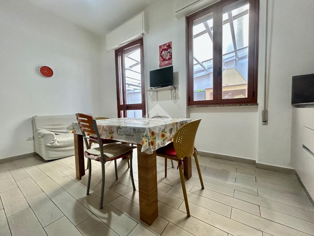 Tramite accesso indipendente accediamo al piano terra che si articola in soggiorno, cucina abitabile bagno con box doccia e ripostiglio.