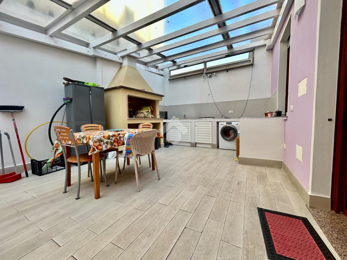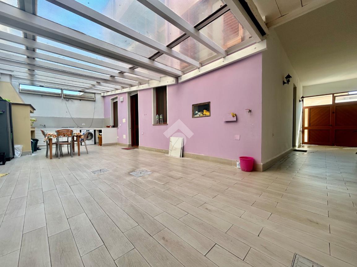 A completare l’immobile troviamo la terrazza sovrastante calpestatile, cortile coperto e passo carrabile.